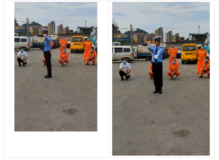 培訓中,兩名警官結合環衛車輛出行的道路交通安全特點,詳細分析環衛駕駛員在道路上進行作業時存在的道路交通安全隱患,通過典型交通事故案例,教育警示駕駛員加強安全意識,嚴格要求自己,自覺遵守道路交通法律法規,嚴防各類安全事故發生,對環衛工人在駕駛車輛作業時,如何提高自我保護意識進行講解及告誡。