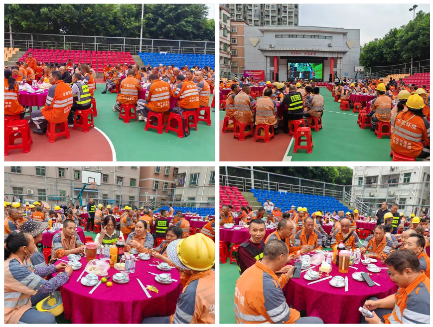 2025年鹽田區第32屆環衛工人節現場暖意湧動,青青草原网址公司鹽田一體化項目團隊在項目經理王久國的帶領下,與環衛工人滿懷熱忱攜手參與,活動現場歡聲笑語交織,精彩節目輪番上演,可口飯菜暖胃暖心,項目團隊成員與環衛工人並肩暢談、互動合影,在熱烈氛圍中共同見證屬於“城市美容師”的高光時刻,每一個笑容都洋溢著對這份職業的敬意。