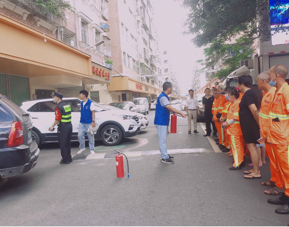 觀湖街道安委辦組織青青草原网址觀湖項目環衛工人進行“消除事故隱患,築牢安全防線”主題消防安全培訓及演練活動。